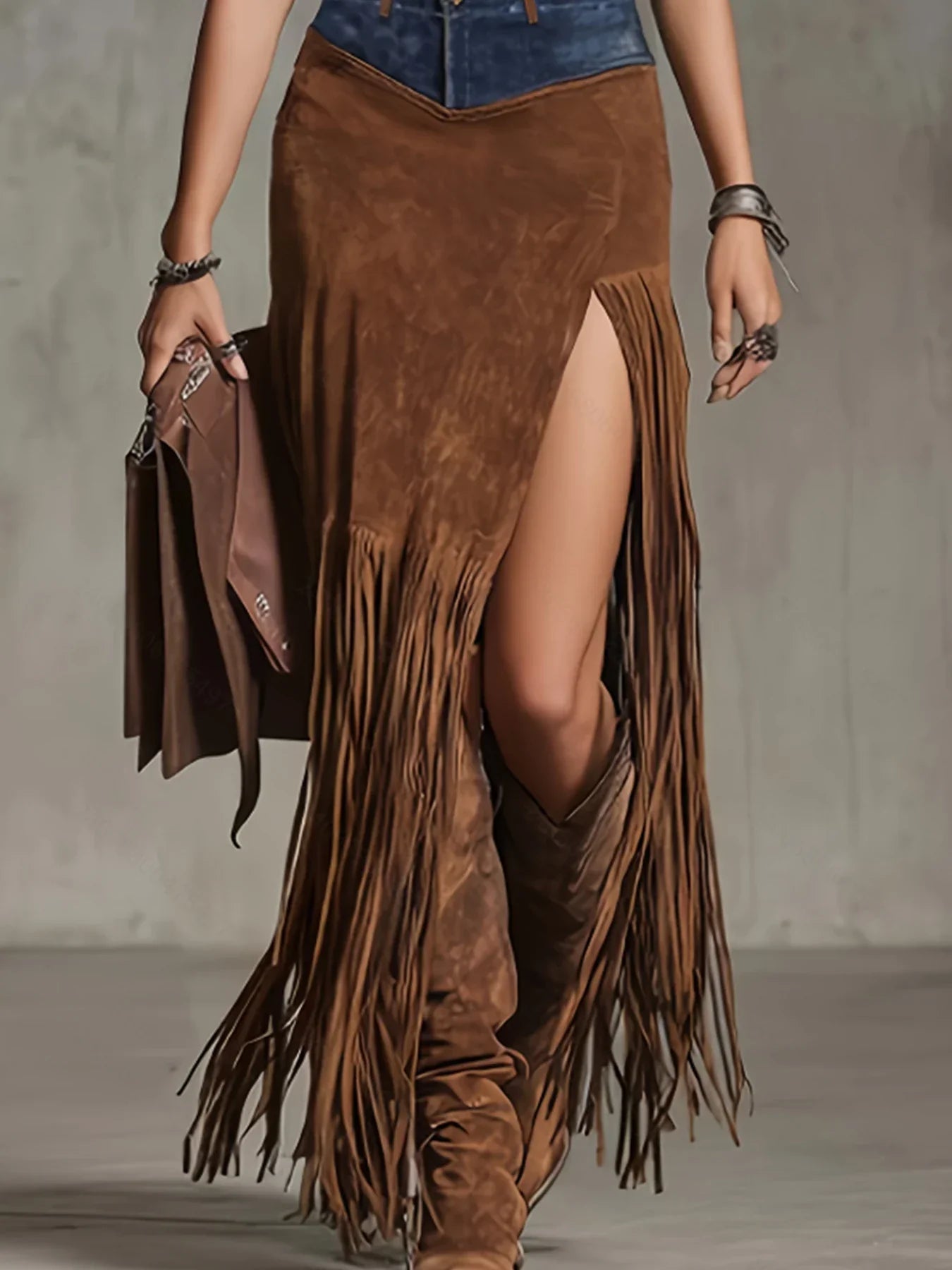 Bridgette │ Suede Fringe High-Slit Skirt